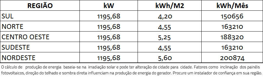 Gerador de Energia Fotovoltaico com potência de 1195,68 kWp