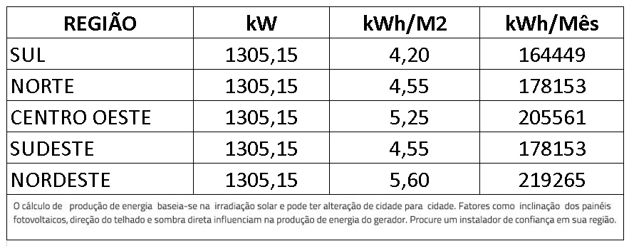 Atenção os geradores tem sua capacidade de geração de acordo com incidênciade irradiação solar e a correta instalação, os dados de geração estão baseados no mapa* de radiação global horizontal média anual do Brasil.