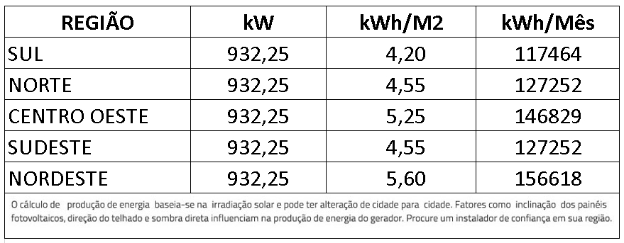 Atenção os geradores tem sua capacidade de geração de acordo com incidênciade irradiação solar e a correta instalação, os dados de geração estão baseados no mapa* de radiação global horizontal média anual do Brasil.