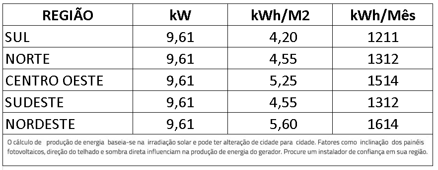 Atenção os geradores tem sua capacidade de geração de acordo com incidência de irradiação solar e a correta instalação, os dados de geração estão baseados no mapa* de radiação global horizontal média anual do Brasil.